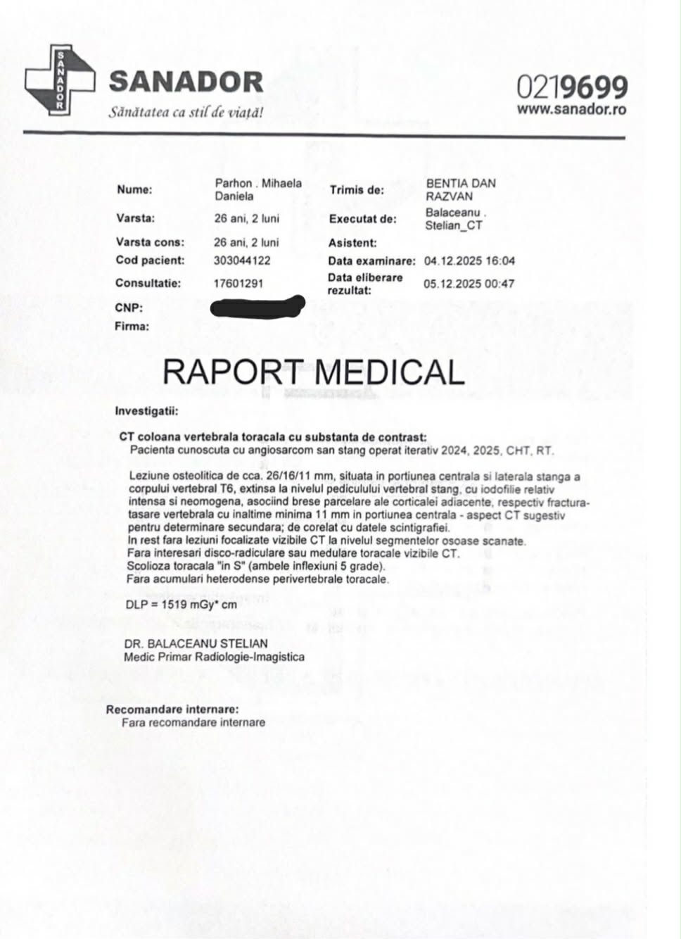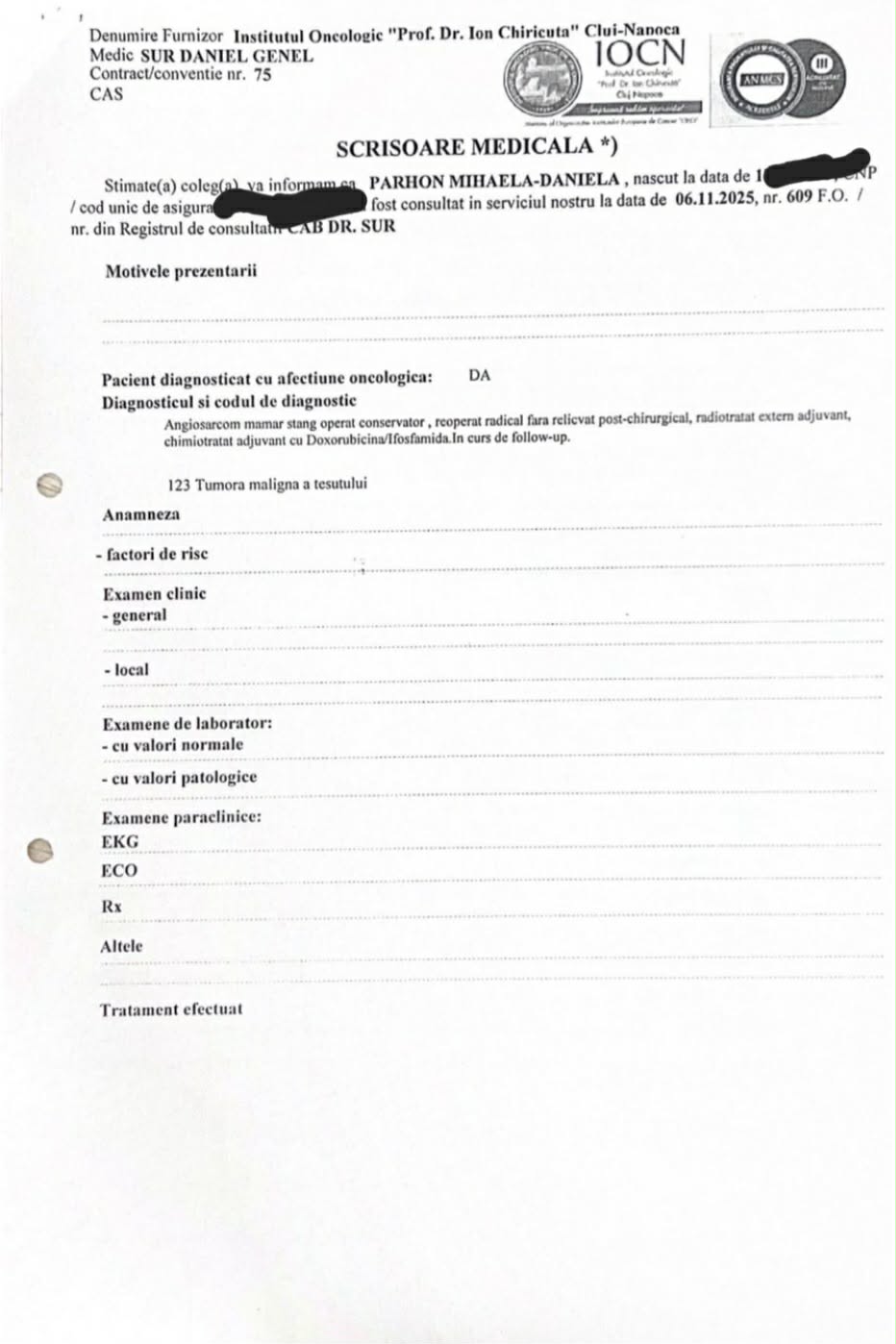 La doar 26 de ani, Parhon Mihaela Daniela trăiește o realitate pe care puțini tineri o pot cuprinde cu mintea: lupta cu un cancer extrem de rar și agresiv. Diagnosticată anul trecut cu angiosarcom mamar de grad înalt, Daniela a parcurs, într-un timp scurt, etape medicale dure – două intervenții chirurgicale majore și tratamente oncologice complexe – fără să-și piardă demnitatea sau speranța.