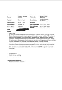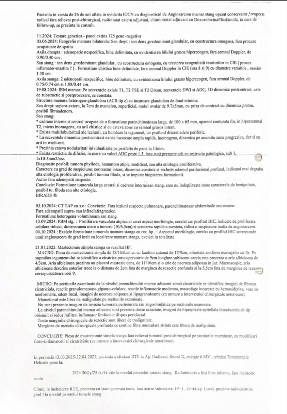 „A cerut să trimit proba de la prima biopsie acolo pentru a o reevalua și eventual confirma diagnosticul și pentru a afla ce trebuie să fac în continuare”, explică Daniela.