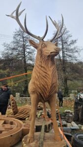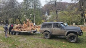 Duminică, 9 noiembrie 2025, s-au alăturat celelalte sculpturi – o adevărată familie a muntelui: „Râsul” și „Căprioara culcată” de Ciprian Surulescu, „Vulpea” și „Mistrețul” de Ioan Ungur, „Capra neagră” și „Cocoșul de munte” de Nicolae Baicu, „Cerbul” de Gabriel Pătrașcu și „Troița creștină” de Andrei Pop. Însoțită de „Crucea cu Iisus Hristos răstignit”, întreaga colecție formează acum un adevărat altar al lemnului și credinței în inima Carpaților.