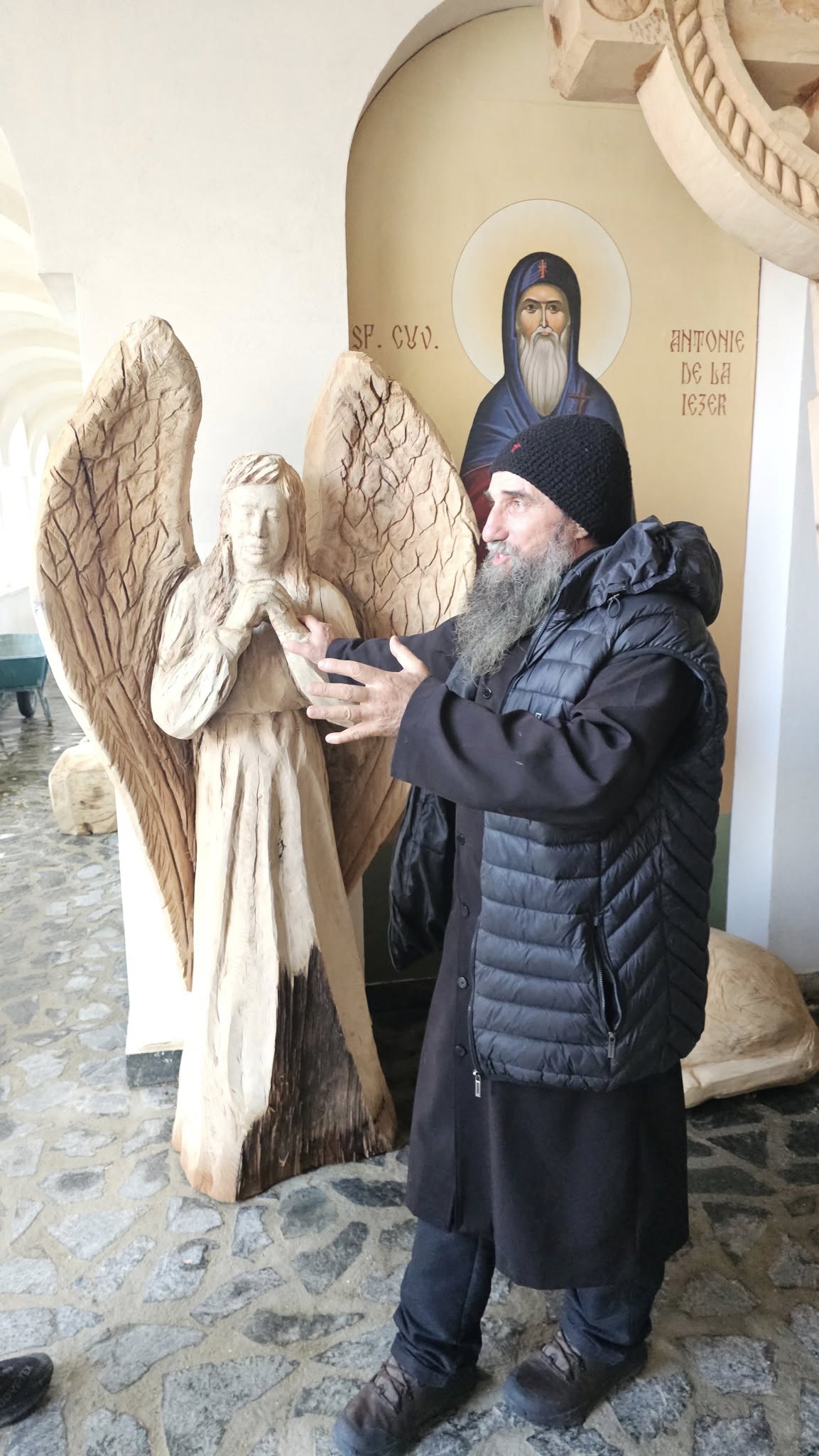Părintele Teofan Stelian Stanca a întâmpinat cu bucurie artiștii și participanții, oferindu-le ospitalitate și timp pentru povești în mijlocul sculpturilor care și-au găsit locul firesc în pridvorul mănăstirii. Oamenii aflați la liturghie au venit să ajute, transformând acest eveniment într-o adevărată sărbătoare a comunității, a prieteniei și a credinței.