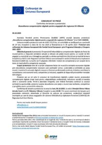 La sediul Direcției Silvice Vâlcea a avut loc astăzi, 6 octombrie 2025, conferința de lansare a proiectului „Dezvoltarea competențelor digitale pentru angajații din regiunea SV-Oltenia” (Cod SMIS 336928), implementat de Asociația Română pentru Promovarea Sănătății (ARPS) și cofinanțat de Uniunea Europeană din Fondul Social European Plus, prin Programul Educație și Ocupare 2021-2027.