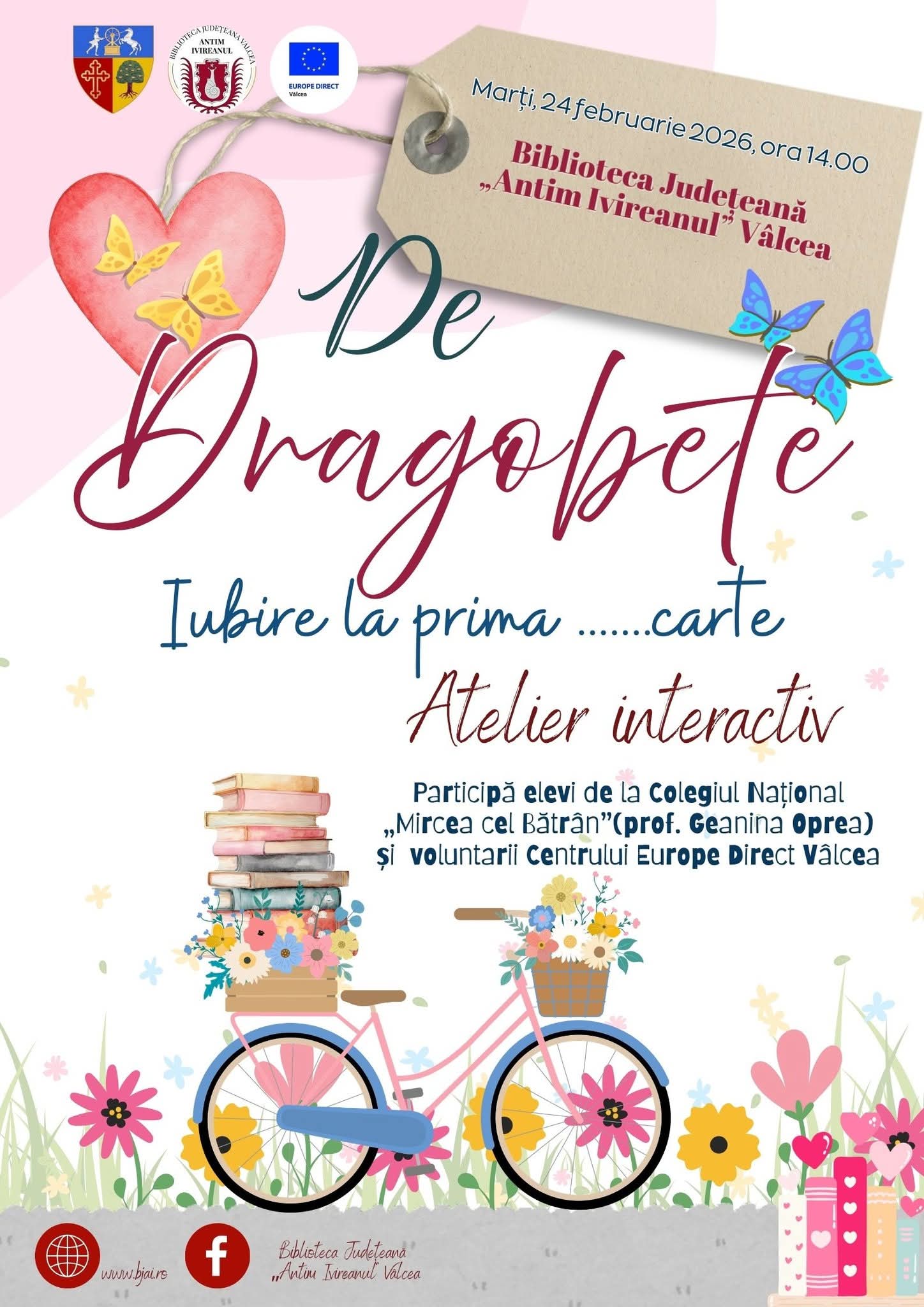 Pe 24 februarie 2026, de Dragobete, iubirea nu se măsoară în declarații siropoase, ci în pagini întoarse cu emoție. La ora 14.00, la Biblioteca Județeană „Antim Ivireanul” Vâlcea, cititorii sunt invitați la un atelier interactiv cu un titlu care spune tot: „De Dragobete – Iubire la prima… carte”.