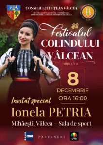 Festivalul Colindului Vâlcean continuă traseul prin județ, iar al treilea spectacol din ediția a X-a va avea loc luni, 8 decembrie 2025, în Sala de sport din Mihăești, începând cu ora 16.00. Evenimentul îi aduce în prim-plan pe colindătorii din vetrele folclorice ale zonei, alături de invitatul special al serii, interpreta Ionela Petria.