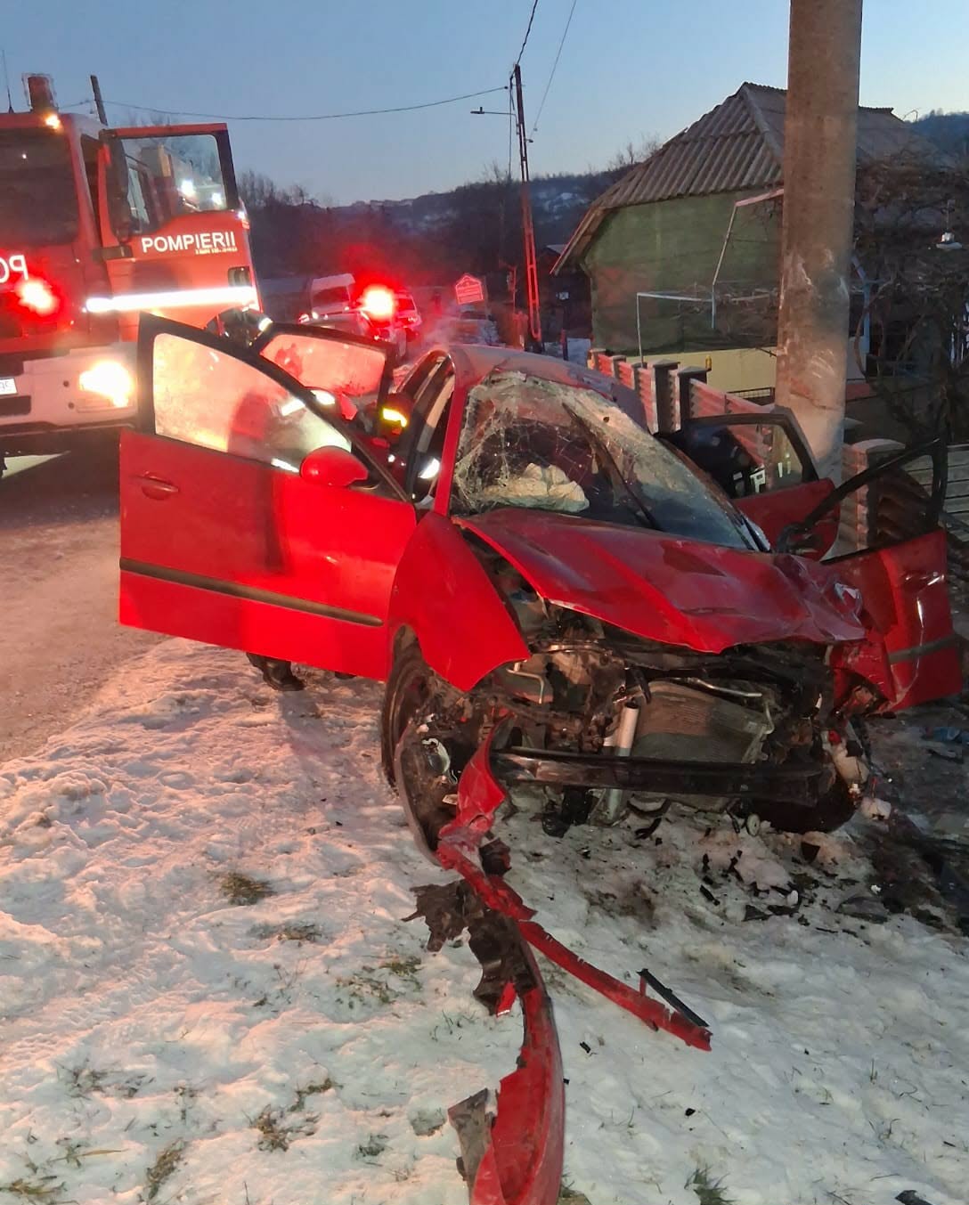 « FOTO Accident rutier în Stroești, județul Vâlcea. O persoană a rămas blocată în autoturism