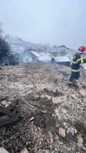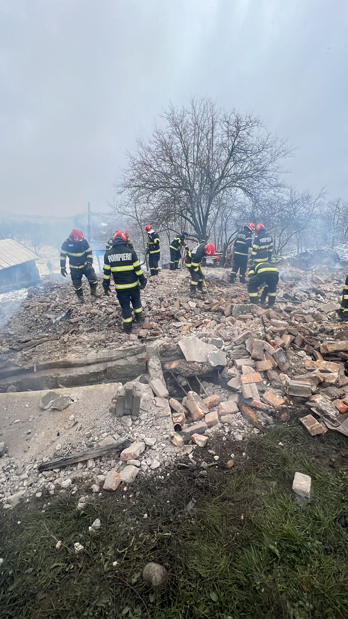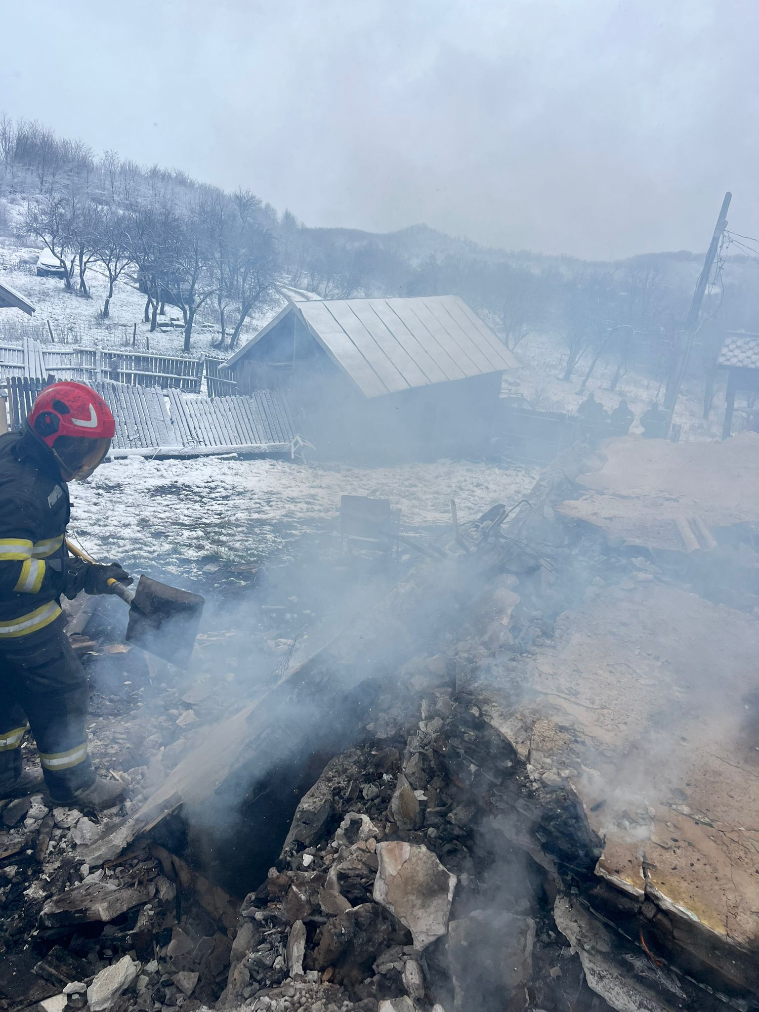 Incendiul a distrus complet o casă de aproximativ 80 de metri pătrați, iar cauza probabilă a fost stabilită ca fiind jar/scântei provenite de la sobă, potrivit ISU Vâlcea.