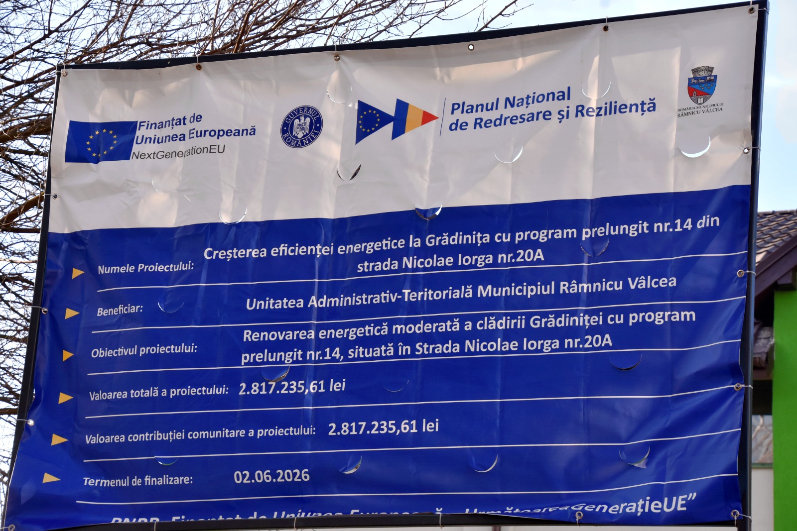 La Grădinița nr. 14, unitate preșcolară cu o capacitate de 115 copii, lucrările de eficientizare energetică a imobilului derulate în cadrul unui proiect cu o finanțare PNRR nerambursabilă de peste 2,8 milioane lei au fost mai complexe și au constat în izolarea termică a fațadei (partea vitrată și partea opacă), a soclului, a planșeului de peste ultimul nivel și a planșeului peste subsol), montarea de sisteme alternative de producere a energiei (panouri solare), intervenții la sistemele de iluminat și de incendiu și montarea unei instalații proprii de detecție, semnalizare și alarmare la incediu.