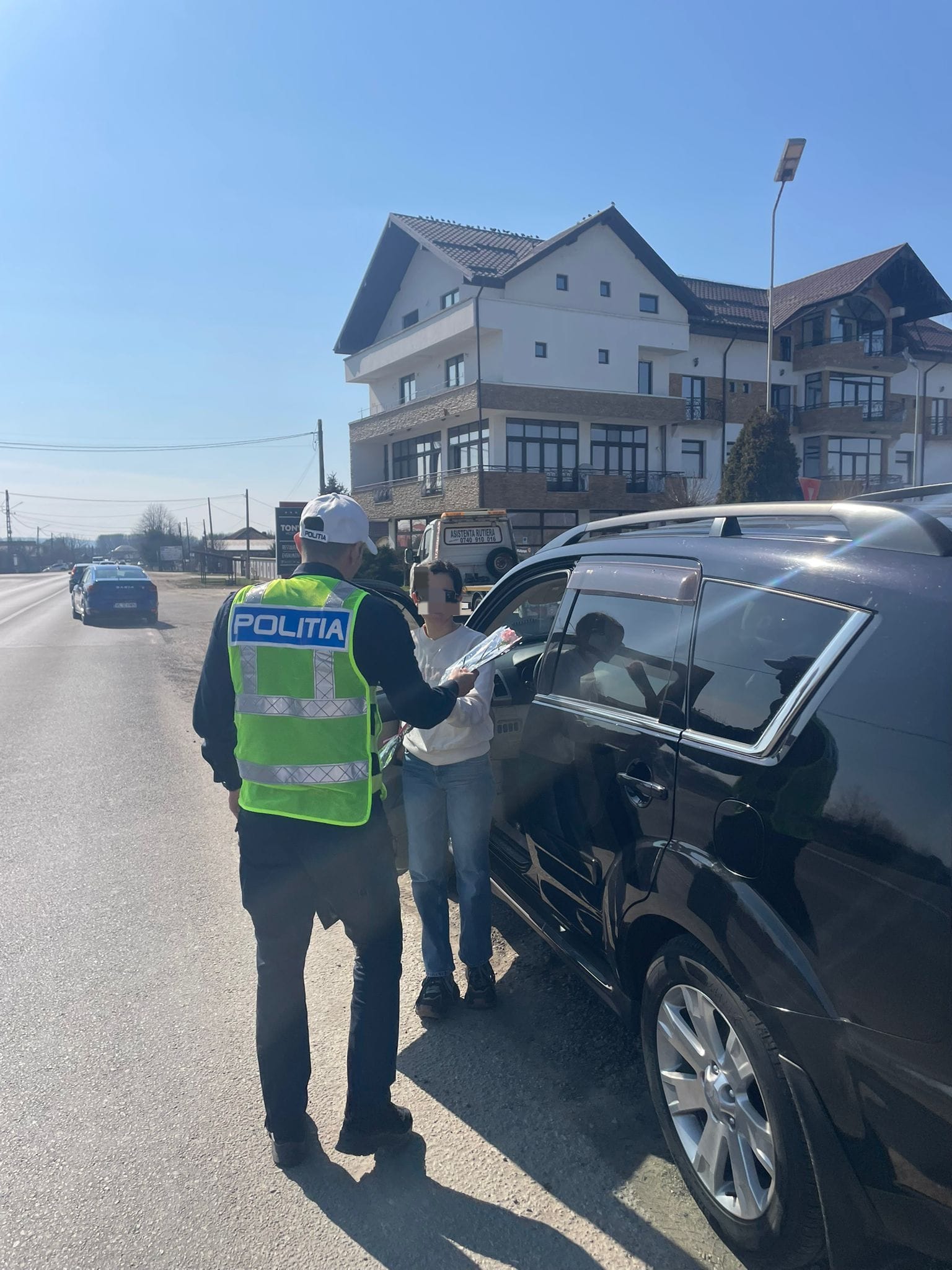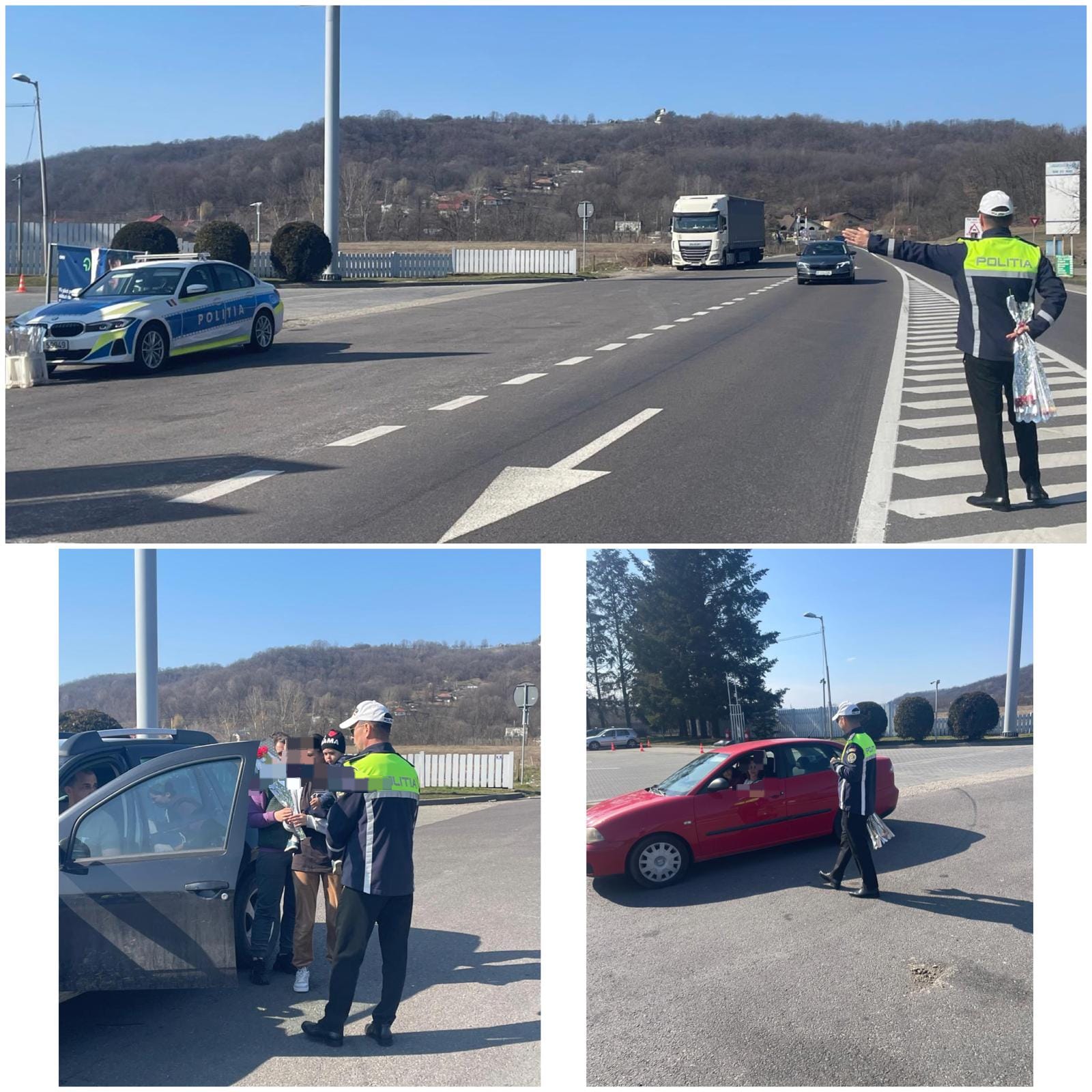 Polițiștii au profitat de moment pentru a le ura tuturor doamnelor și domnișoarelor o primăvară plină de bucurii, reamintind totodată tuturor participanților la trafic că respectul și conduita preventivă contribuie la siguranța pe drumurile publice.