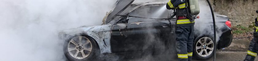 FOTO Mașină cuprinsă de flăcări în cartierul Goranu