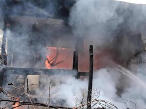 Incendiu a fost lichidat. A ars în totalitate o locuință în suprafață de 70 mp, cu învelitoare din tablă.