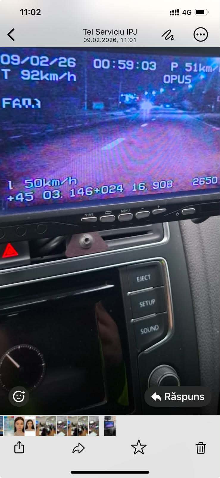 Autovehiculul a fost înregistrat de aparatura radar cu 92 km/h, pe un tronson de drum unde viteza maximă admisă este de 50 km/h, fapt ce a determinat oprirea regulamentară a mașinii.