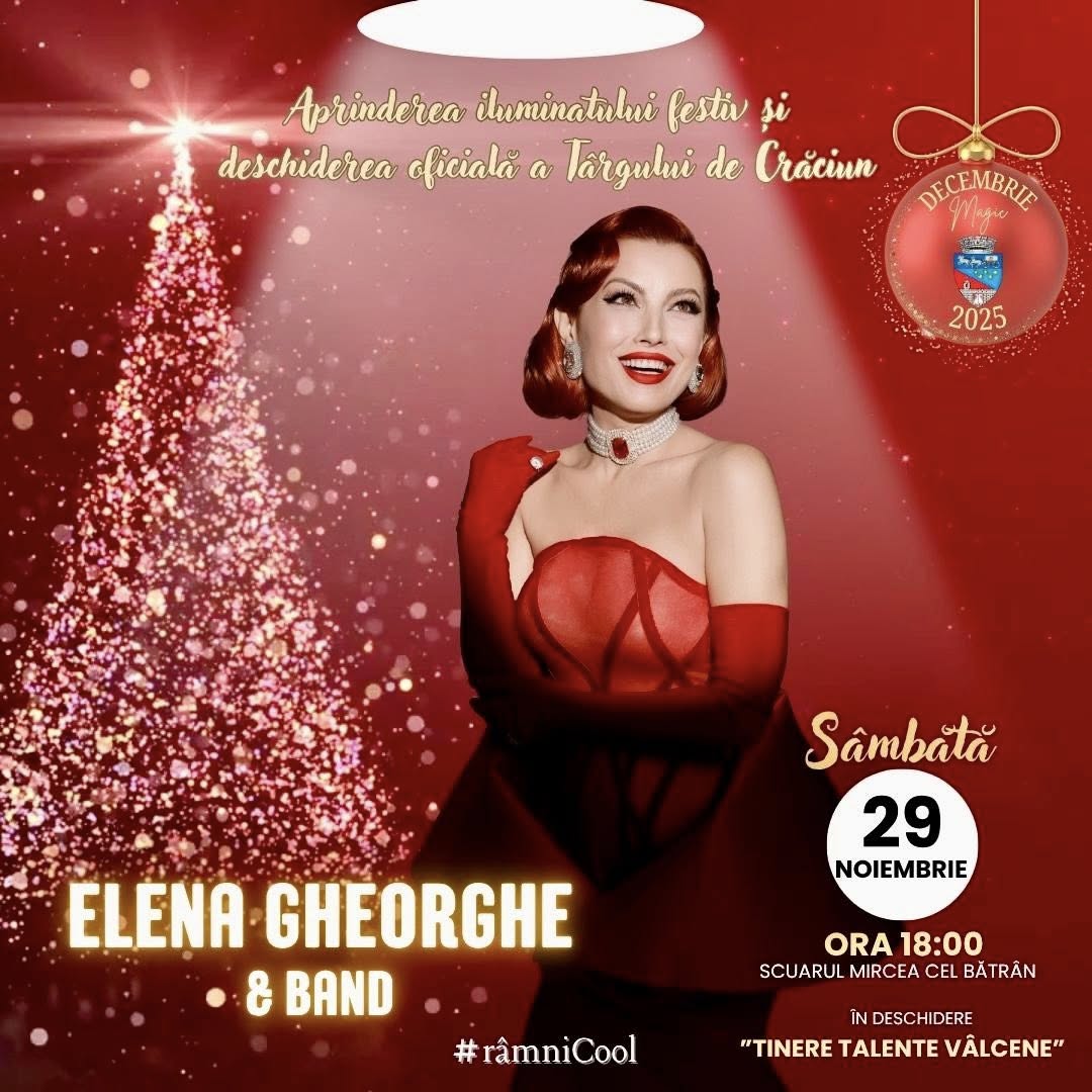 Între 19:40 și 20:25, scena va fi a Elena Gheorghe & Band — un concert care promite să anime atmosfera și să marcheze în stil mare începutul sezonului de iarnă.