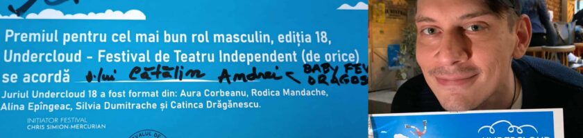 La Festivalul UNDERCLOUD 18 din București, eveniment care a avut loc în perioada 18 septembrie – 5 octombrie, actorul Andrei Cătălin a fost distins cu Premiul pentru cel mai bun rol masculin, Volodea, din spectacolul ”Dragoste” regia Andrei și Andrea Grosu. Cei care l-au urmărit pe scenă, în spectacolele Teatrului Anton Pann sau în alte producții, știu deja cât de cameleonic și intens este jocul său actoricesc. De această dată, și juriul UNDERCLOUD, format din Rodica Mandache, Aura Corbeanu, Catinca Drăgănescu, Silvia Dumitrache, Ioana Marchidan și Alina Epîngeac, a apreciat aceste calități și a decis să îl răsplătească cu Premiul pentru cel mai bun rol masculin.