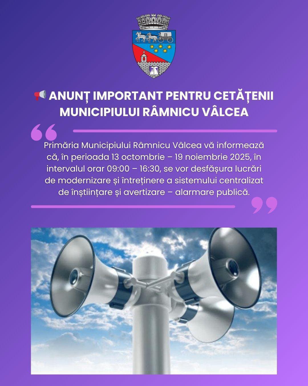 « Teste la sirenele de alarmare în Râmnicu Vâlcea. Primăria anunță modernizarea sistemului de avertizare publică