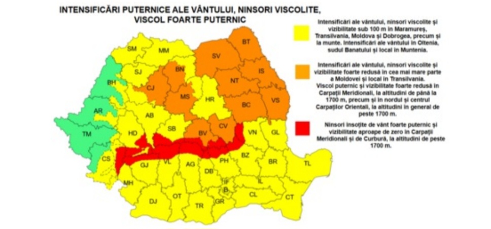 « Vâlcea, sub avertizări meteo severe: viscol și vânt extrem la munte, rafale puternice în zonele joase